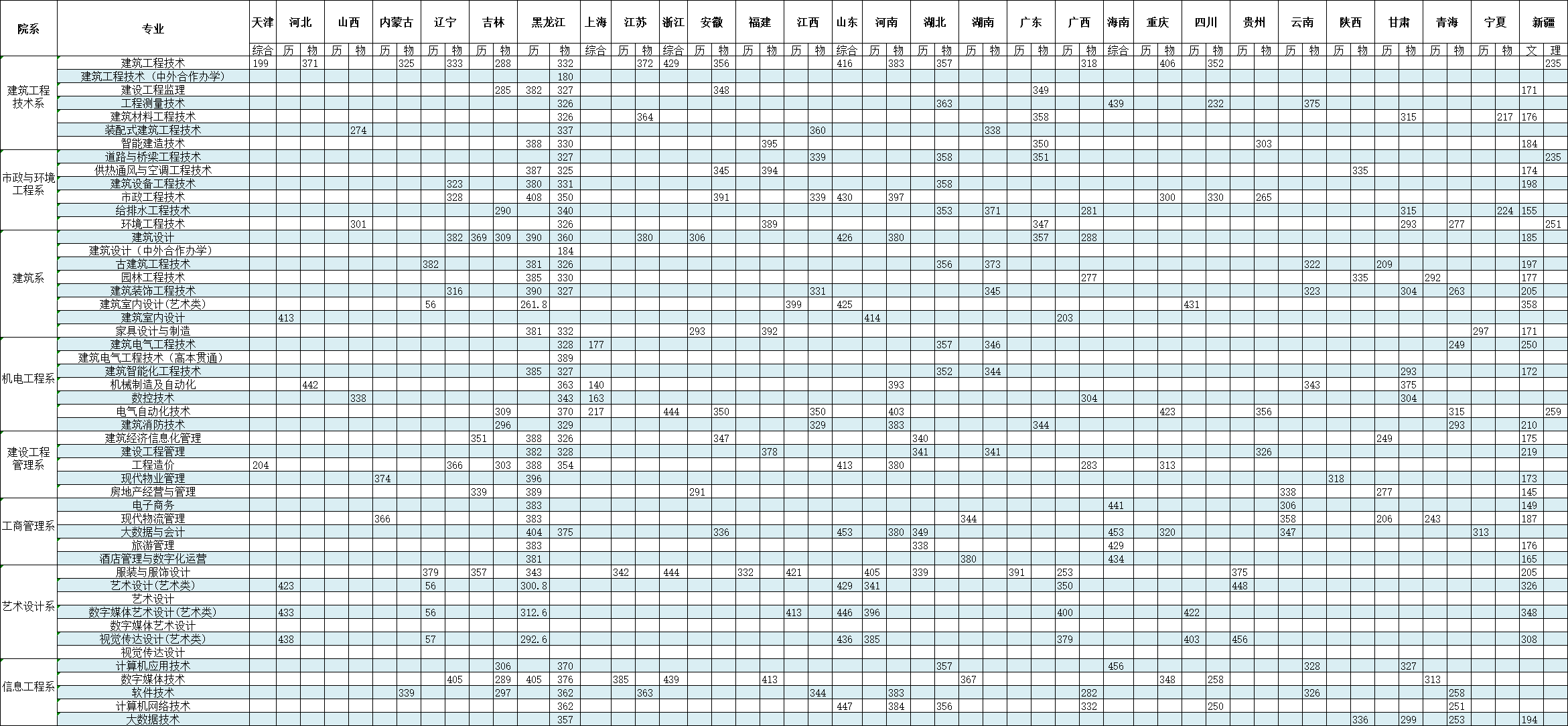 2025年各省录取分数统计表